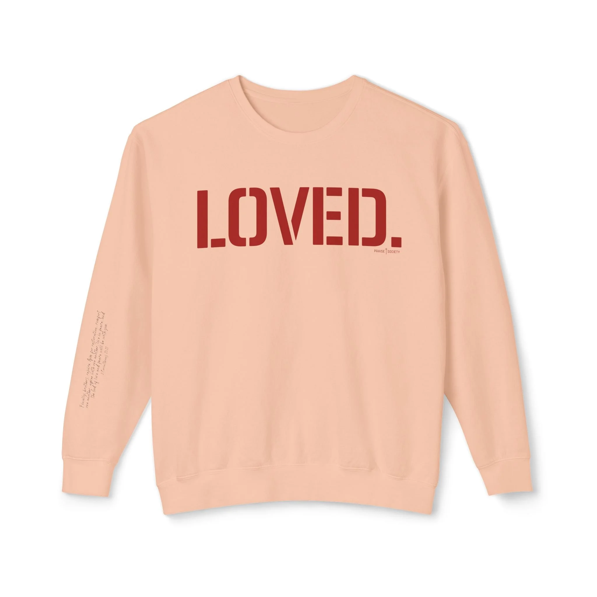 This verse serves as a reminder of the importance of unity, kindness, and the pursuit of peace in our daily lives. For the wearer of the LOVED Lightweight Sweatshirt, this design is a wearable affirmation of this call to action, encouraging them to embody love, restoration, and harmony in their interactions.
