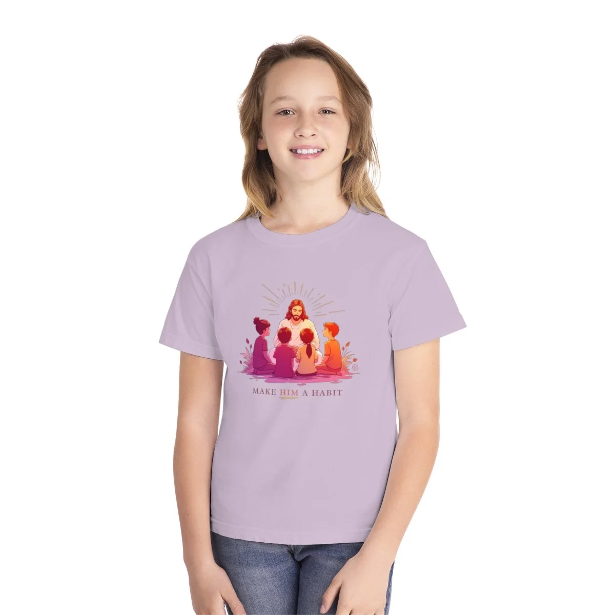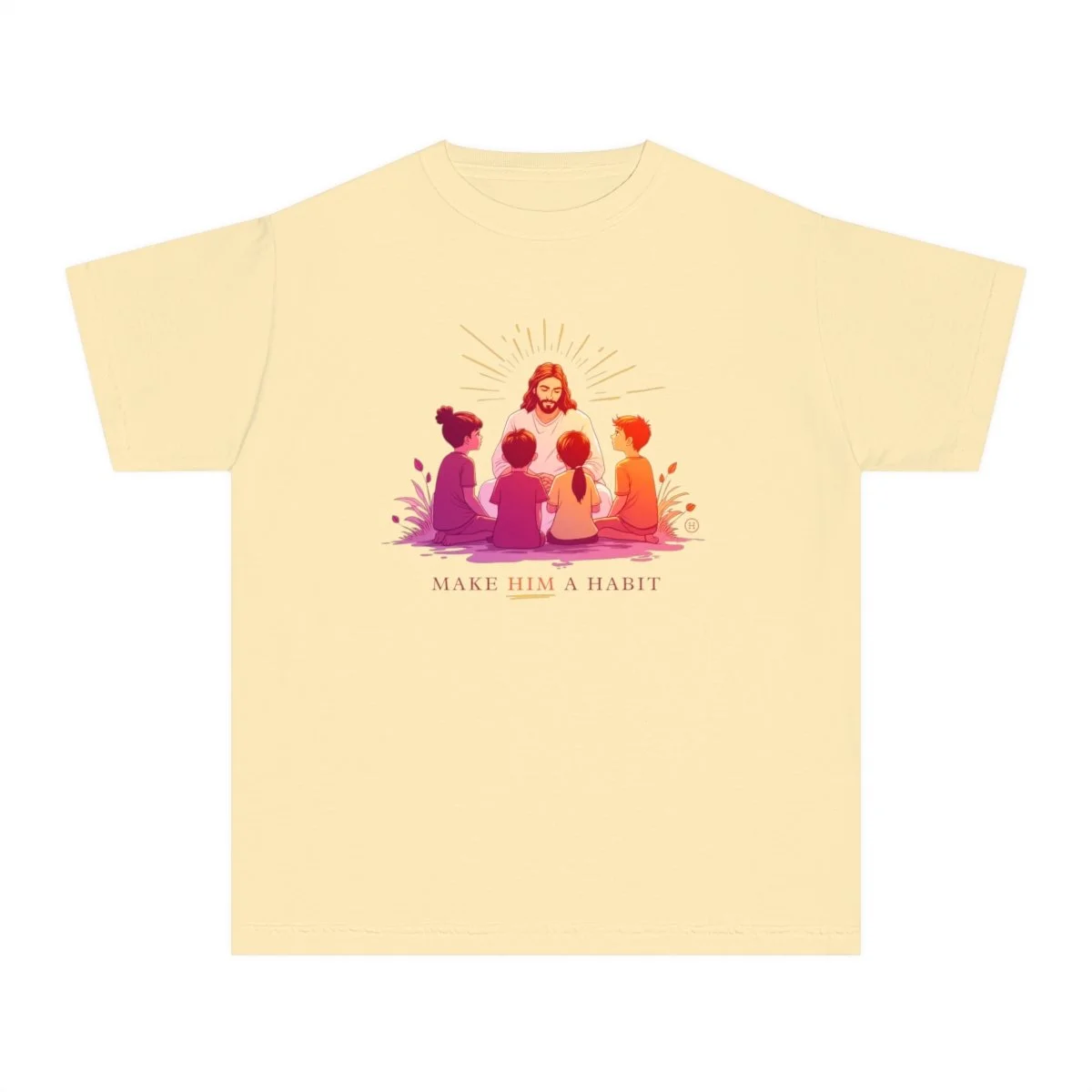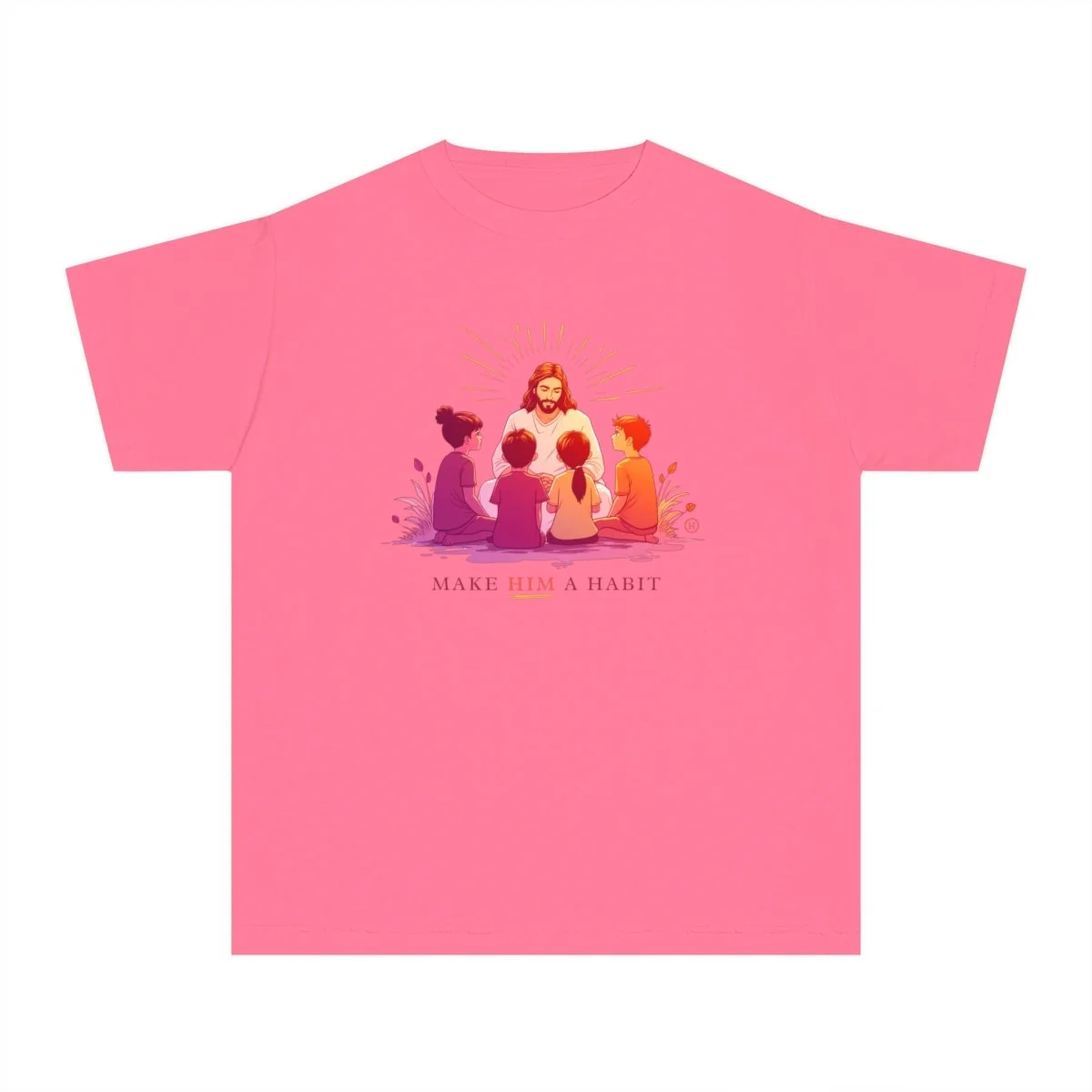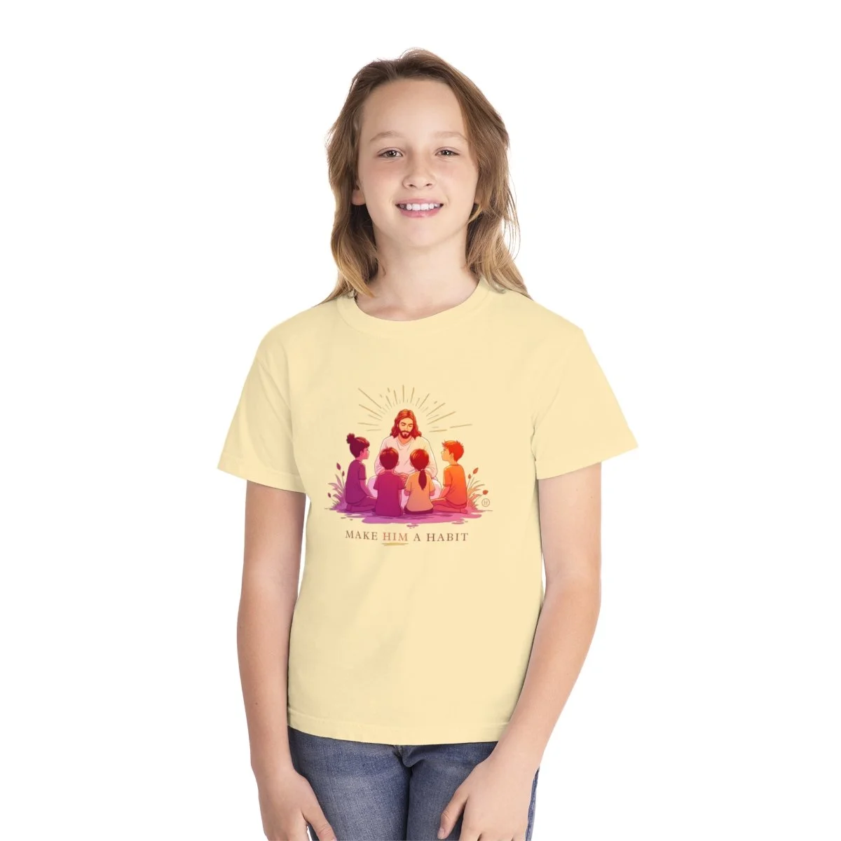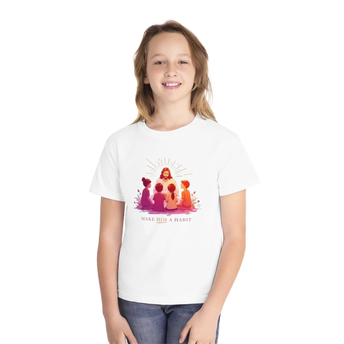 This Christian Kid's Hoodie features a powerful graphic on the front depicting children gathered around Jesus, with the phrase “MAKE HIM A HABIT” below. This design emphasizes the importance of integrating faith into everyday life, offering a meaningful message for kids and parents alike. The hoodie is a perfect blend of comfort, style, and inspiration, encouraging kids to embody the teachings of Jesus in a way that’s both fashionable and heartfelt.